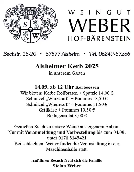 Unser Weingut befindet sich im Herzen von Alsheim, einem idyllischen Weinort in der Verbandsgemeinde Eich. Die Weine der Ortsgemeinde genießen deutschlandweit hohes Ansehen. Auch wir geben jeden Tag unser Bestes, um diesem Ruf gerecht zu werden.